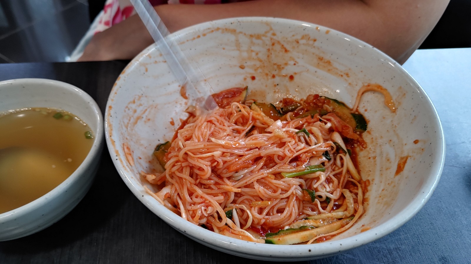 아내가 MSG에 상당히 민감하다. 그래서 아무리 맛있어도 MSG 맛이 배여 나오면 그 음식의 맛을 평가절하하는 버릇이 있다. 그런데 여기서는 그런 말이 하나도 없다. 비빔국수에 딸려나온 국물을 마셔보더니 아주 만족해한다. 그리고 나의 잔치국수 역시 한입만 하면서 먹어보고 마셔보더니 엄지척을 한다.