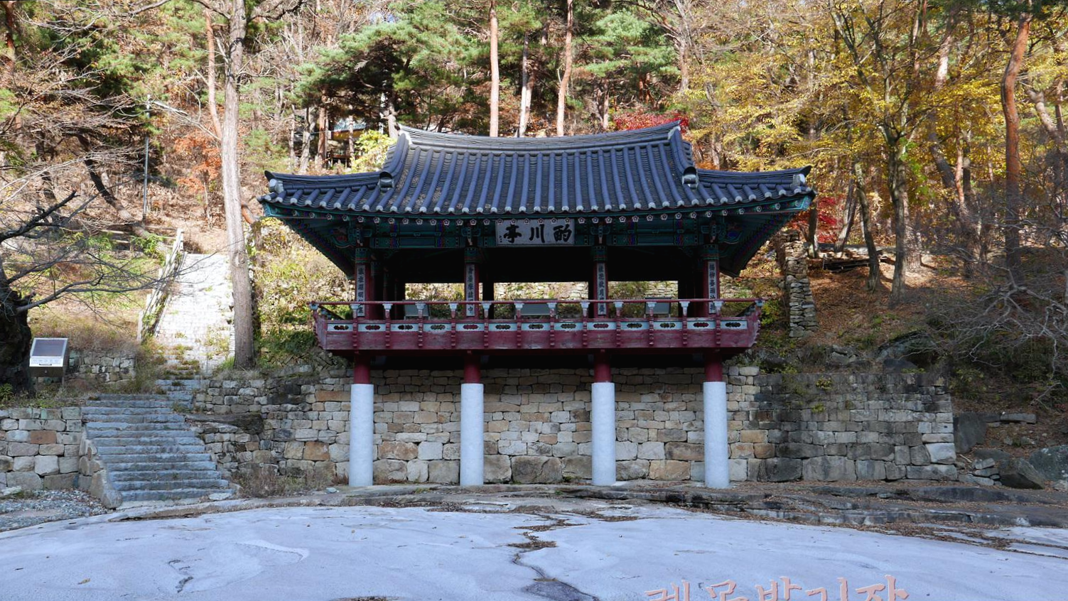 얼마나 걸었을까? 계곡을 따라 쭈욱 올라가니 저기 정자가 하나 보인다.