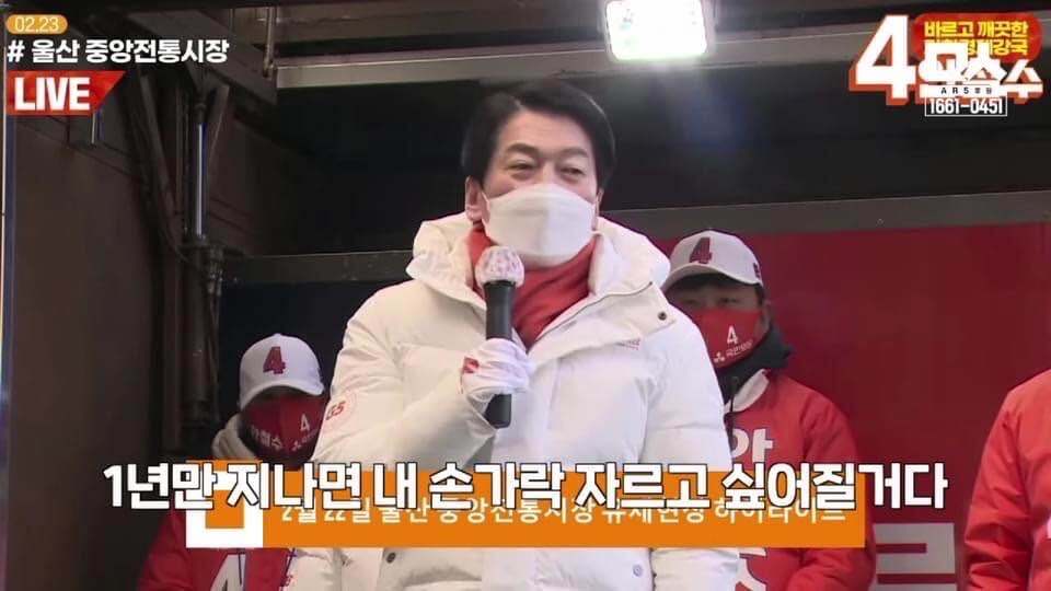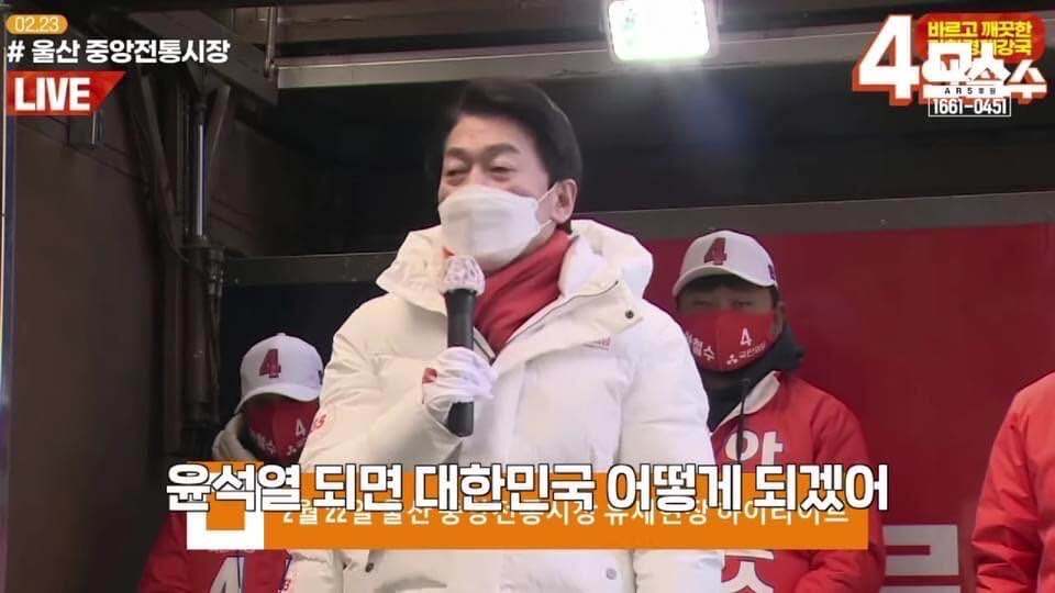 안철수 후보는 선거유세하면서 윤석열 후보에 대해 비난에 가까운 직설타를 날리기도 했다. "윤석열 같은 사람이 대통령이 되면 국민들은 1년 안에 손가락 자르고 싶을 것이다." 맹폭하기도 했다.