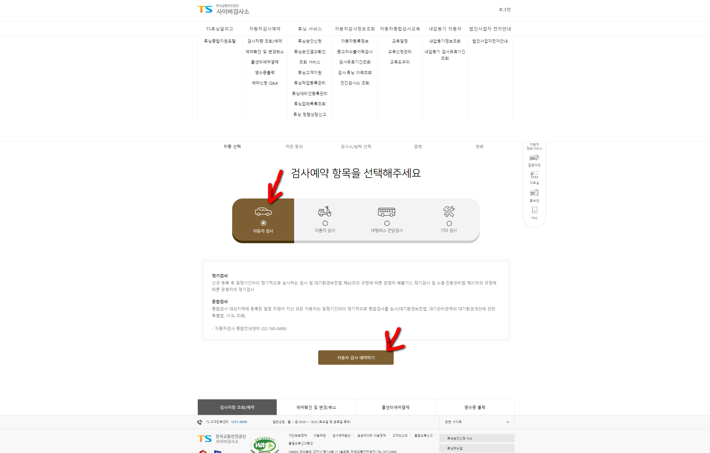 그런 후 메인화면 왼편에 있는 자동차검사예약 아이콘을 클릭한다.