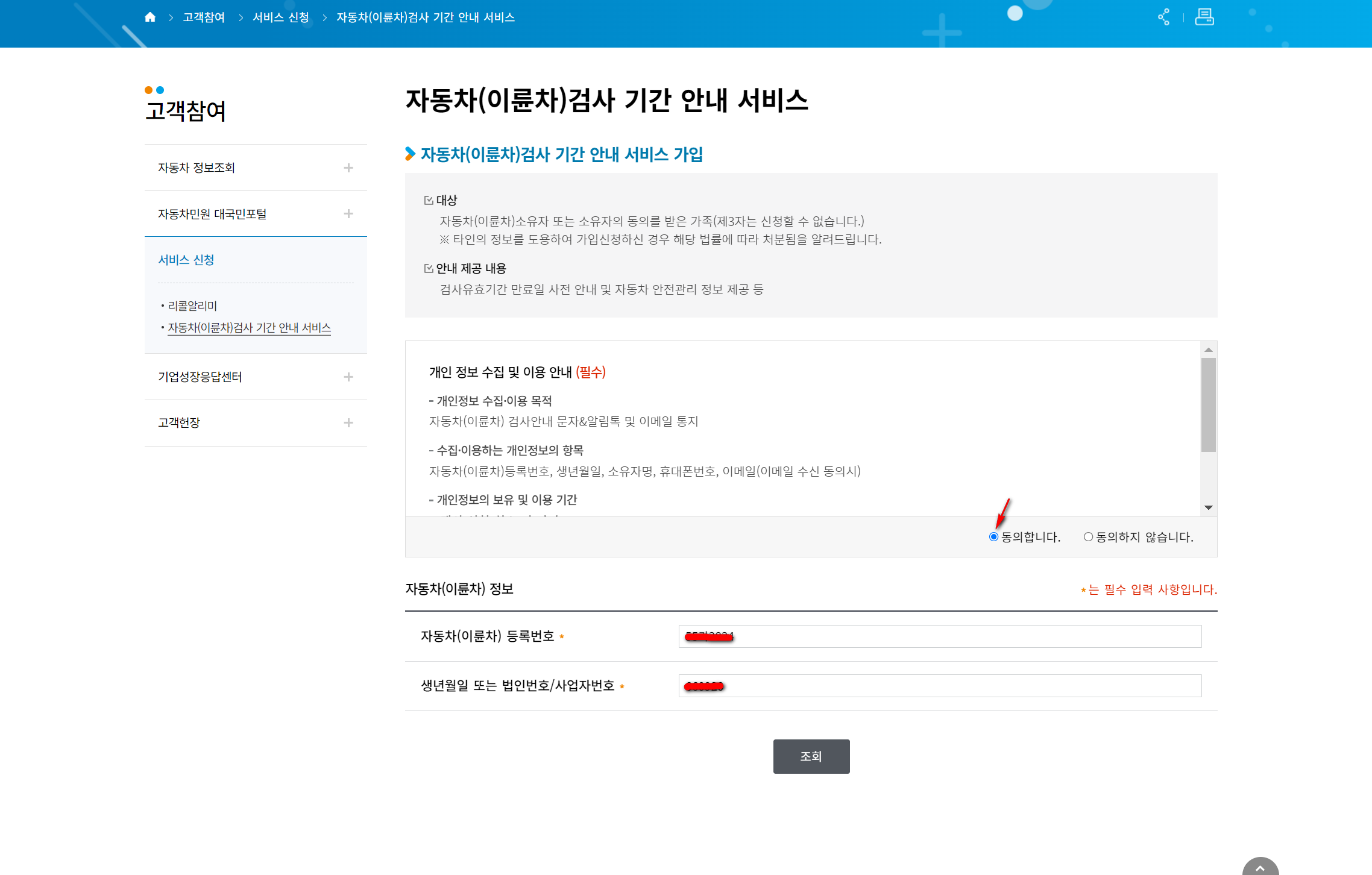 자동차(이륜차)검사 기간 안내 서비스로 이동