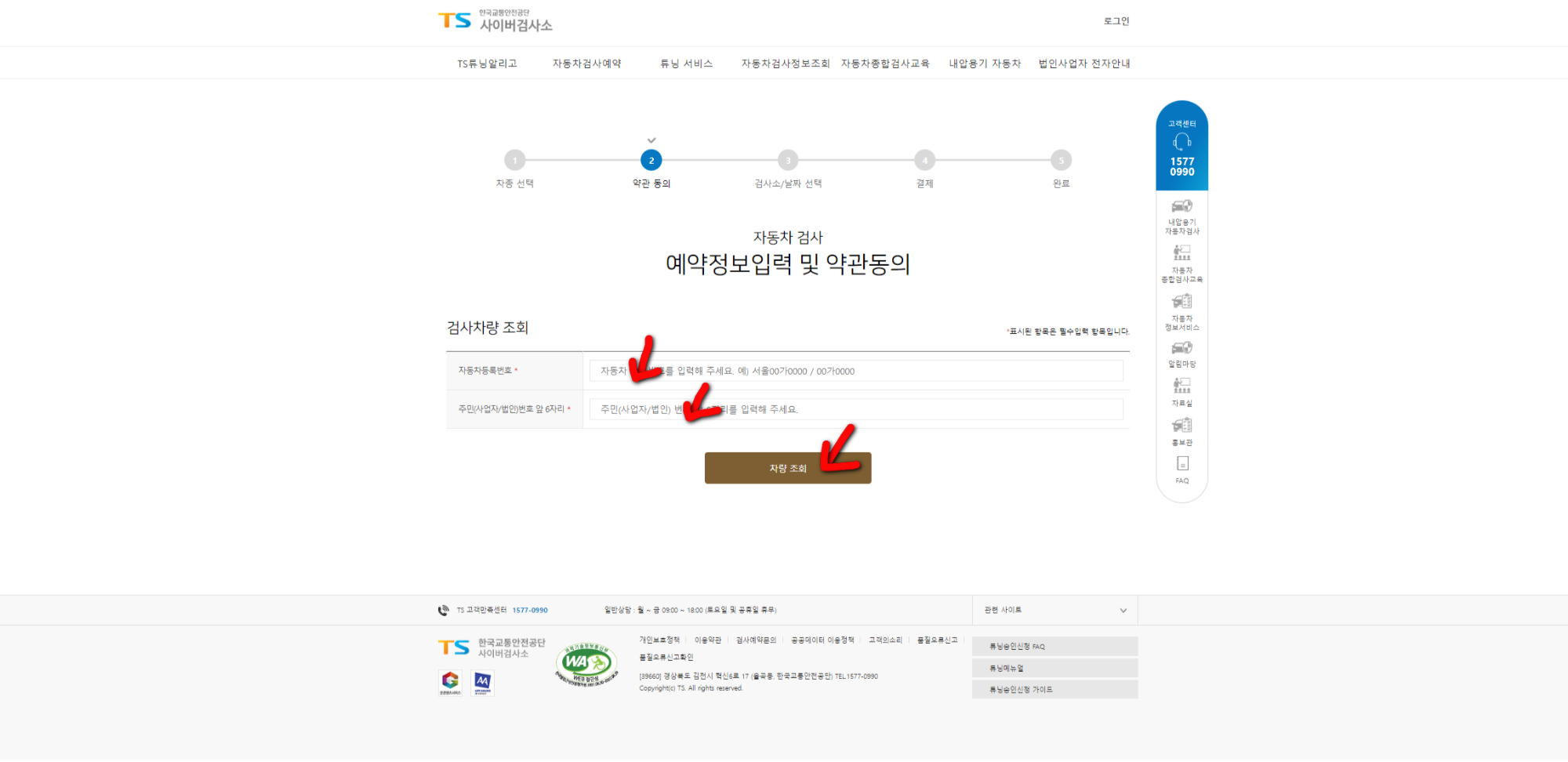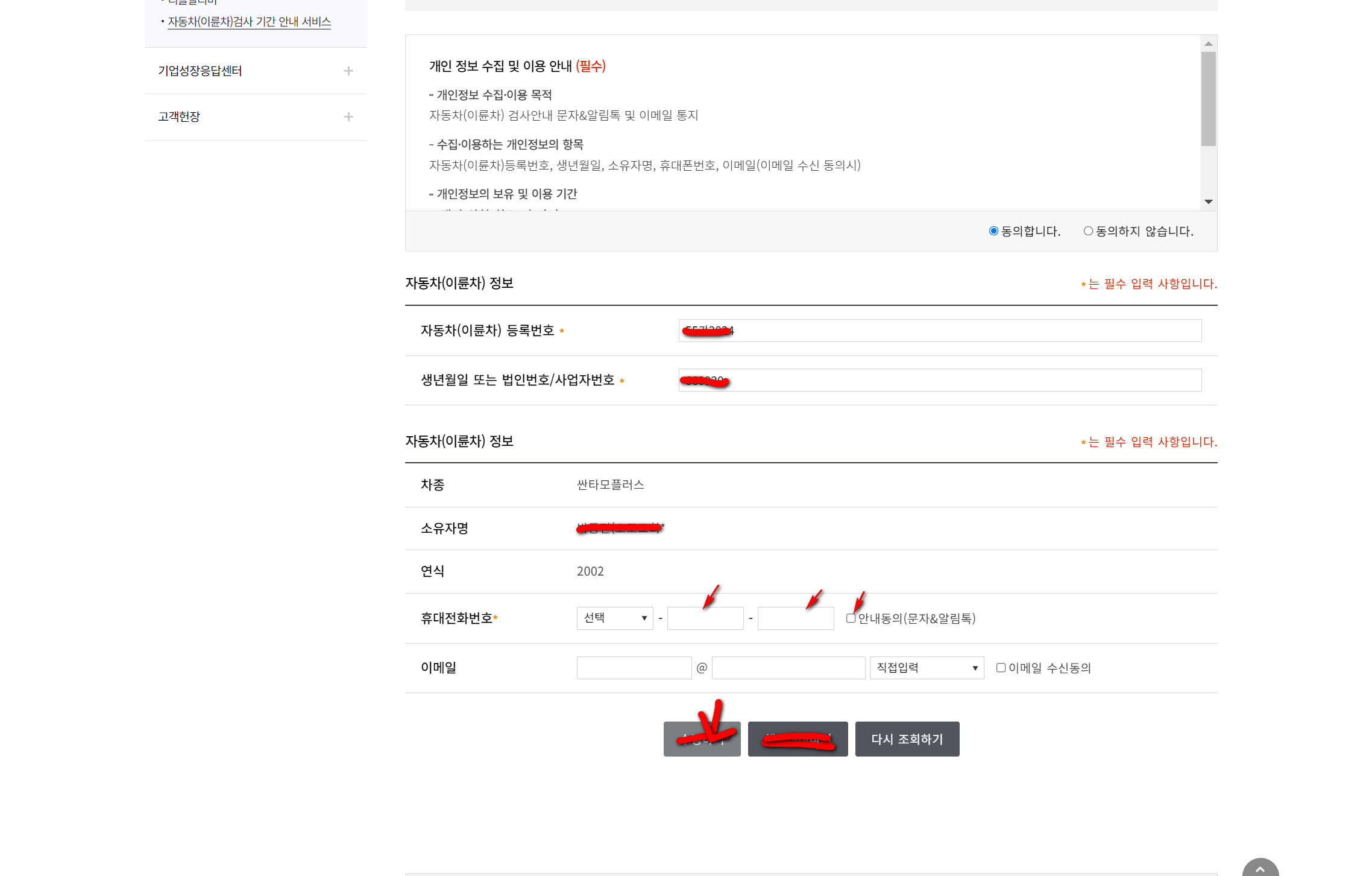 아래 화면에 나온 자신의 자동차 정보를 확인하고