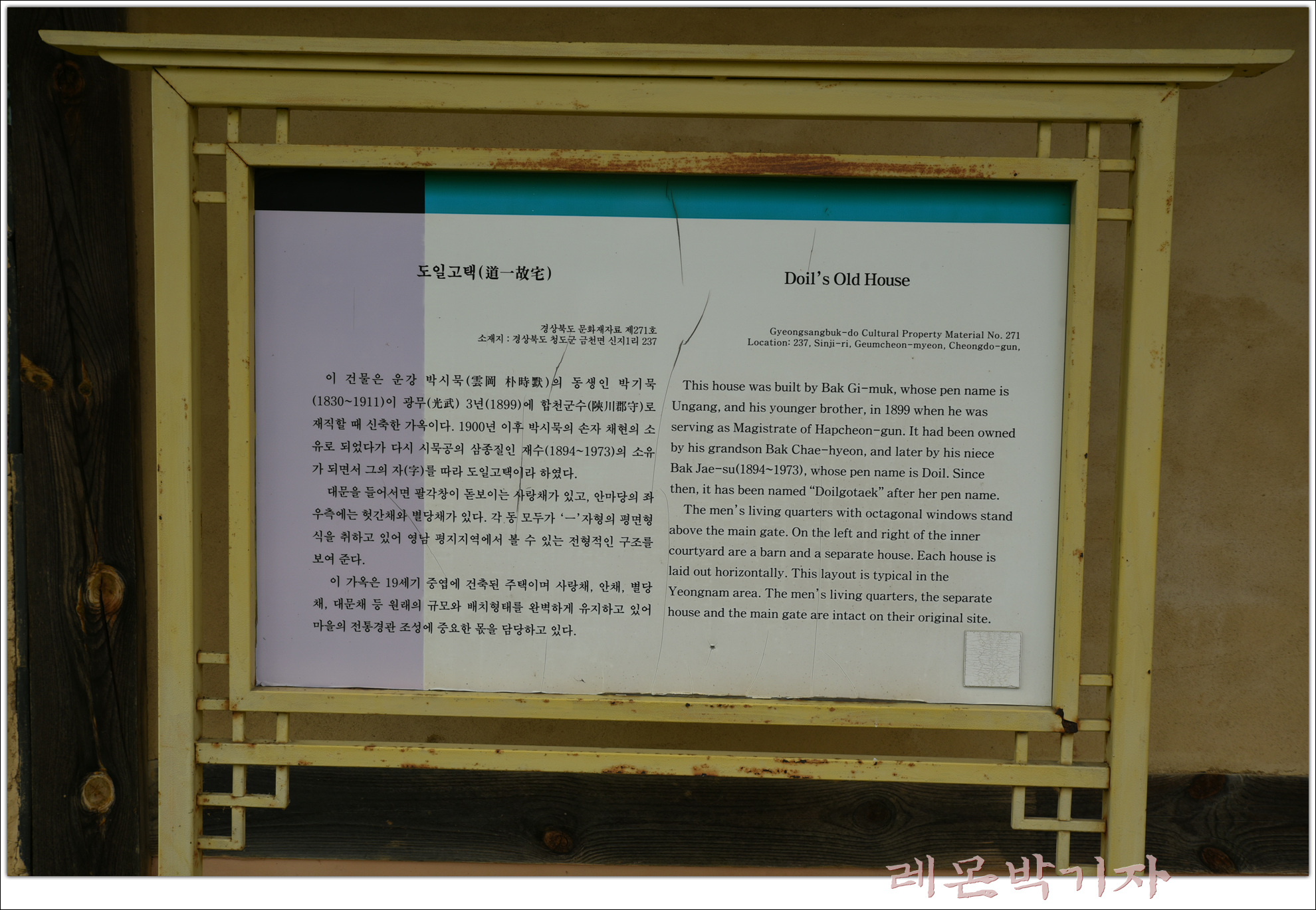 박정주의 아들인 운강(雲岡) 박시묵(朴時黙,1814~1875)이 고택을 크게 중건하였는데