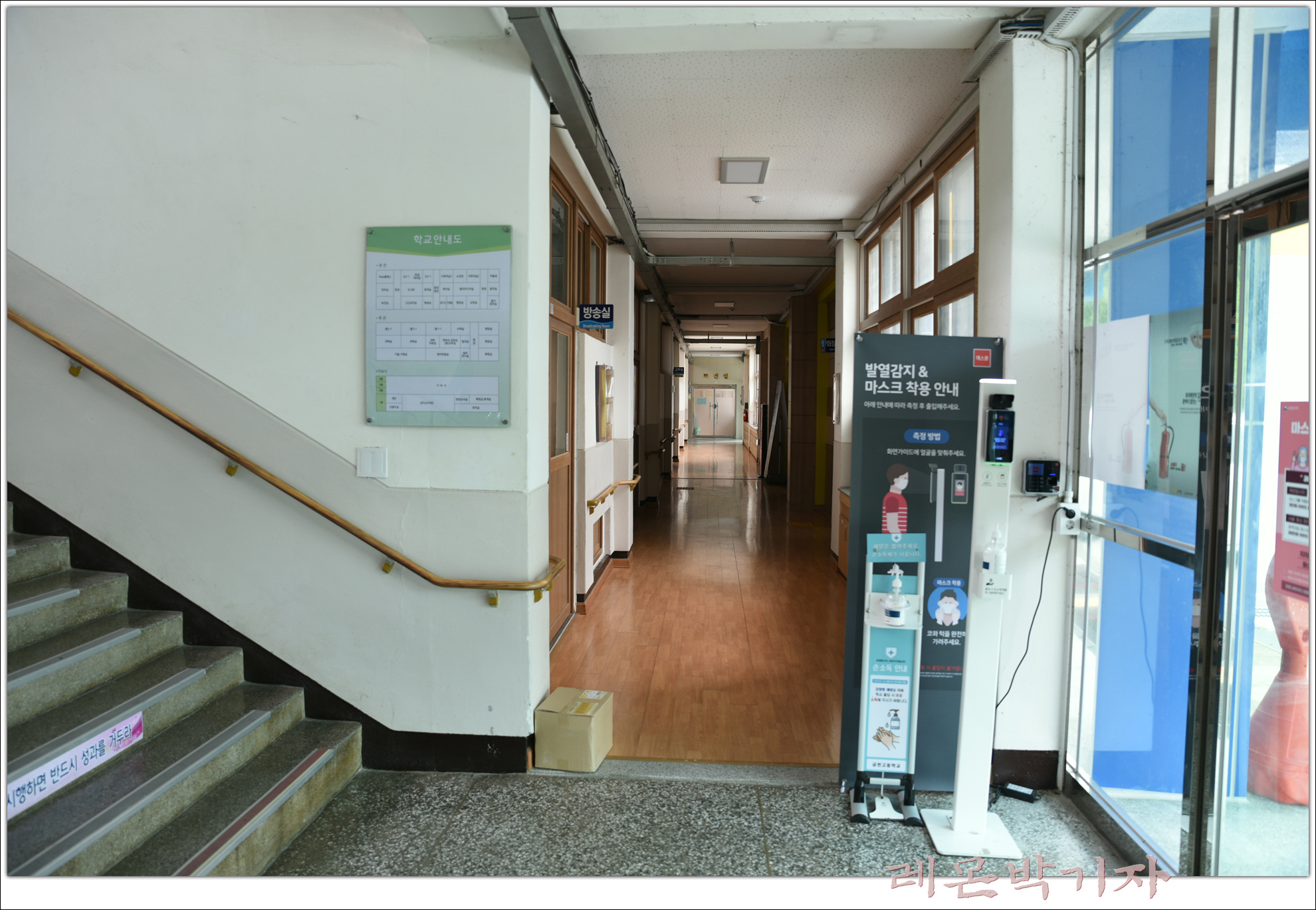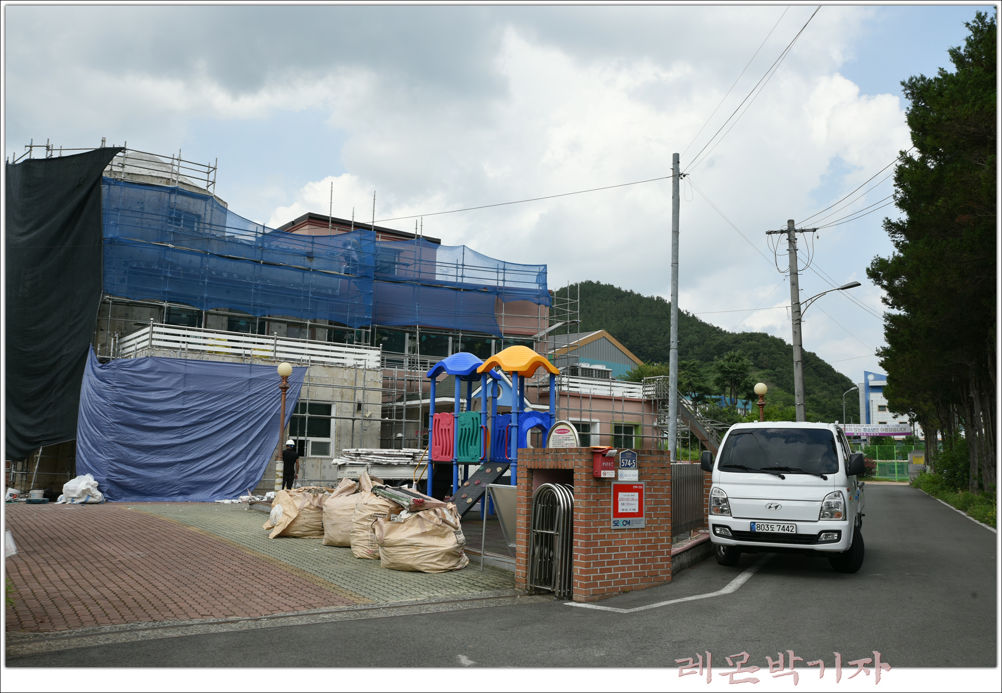학교로 들어가는 입구, 어린이집 같은데 공사 중이다.