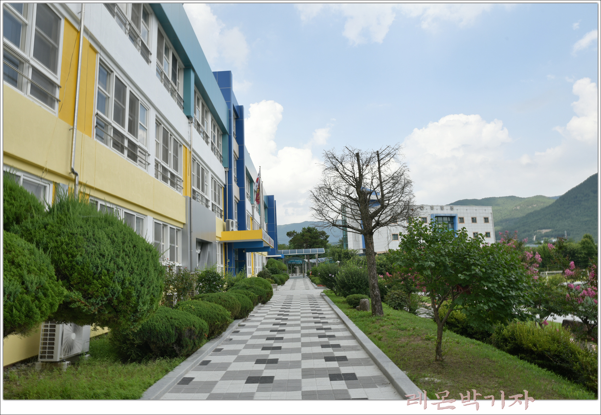 학교 안으로 들어가면 예쁜 색으로 칠한 학교 건물이 있고