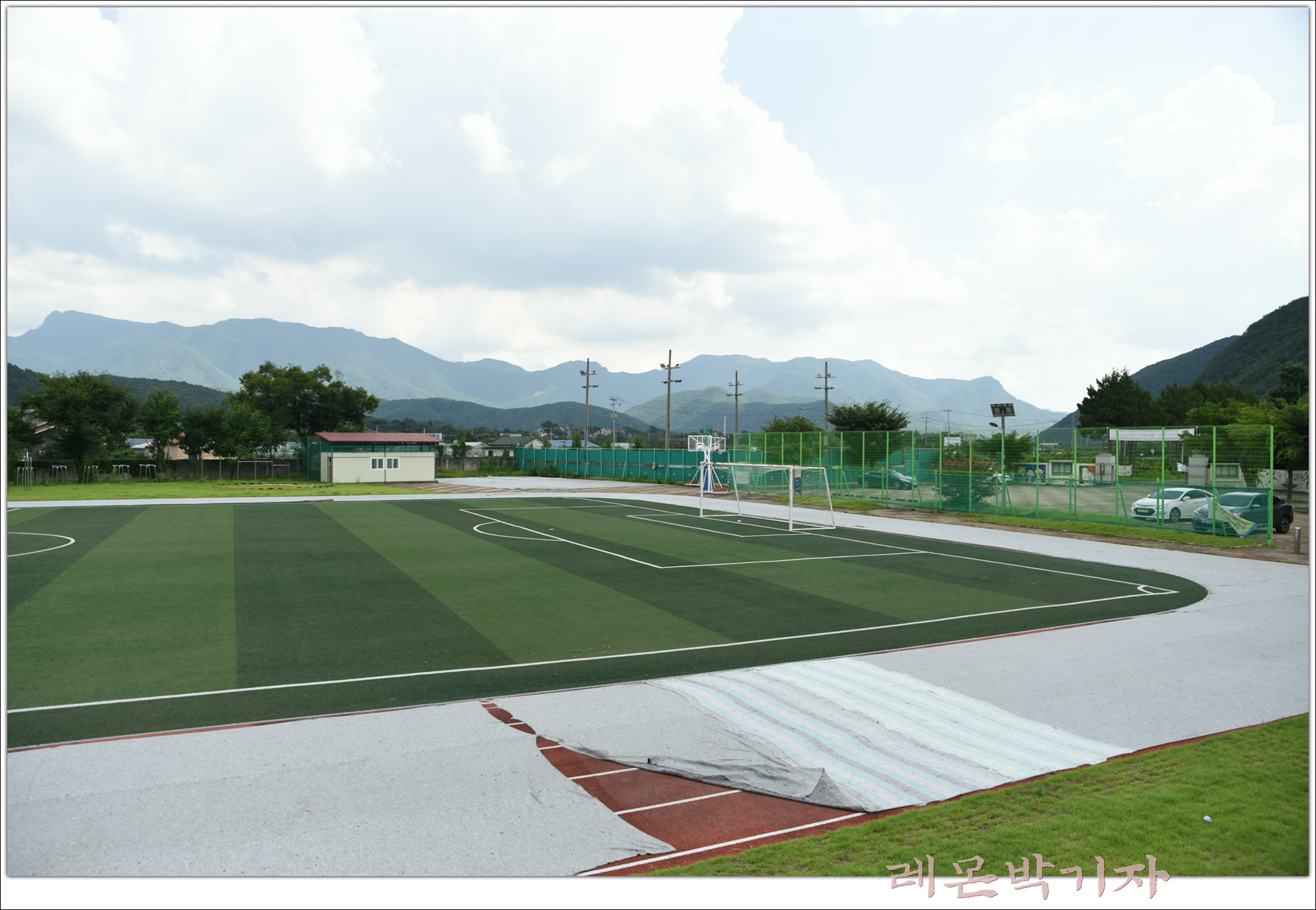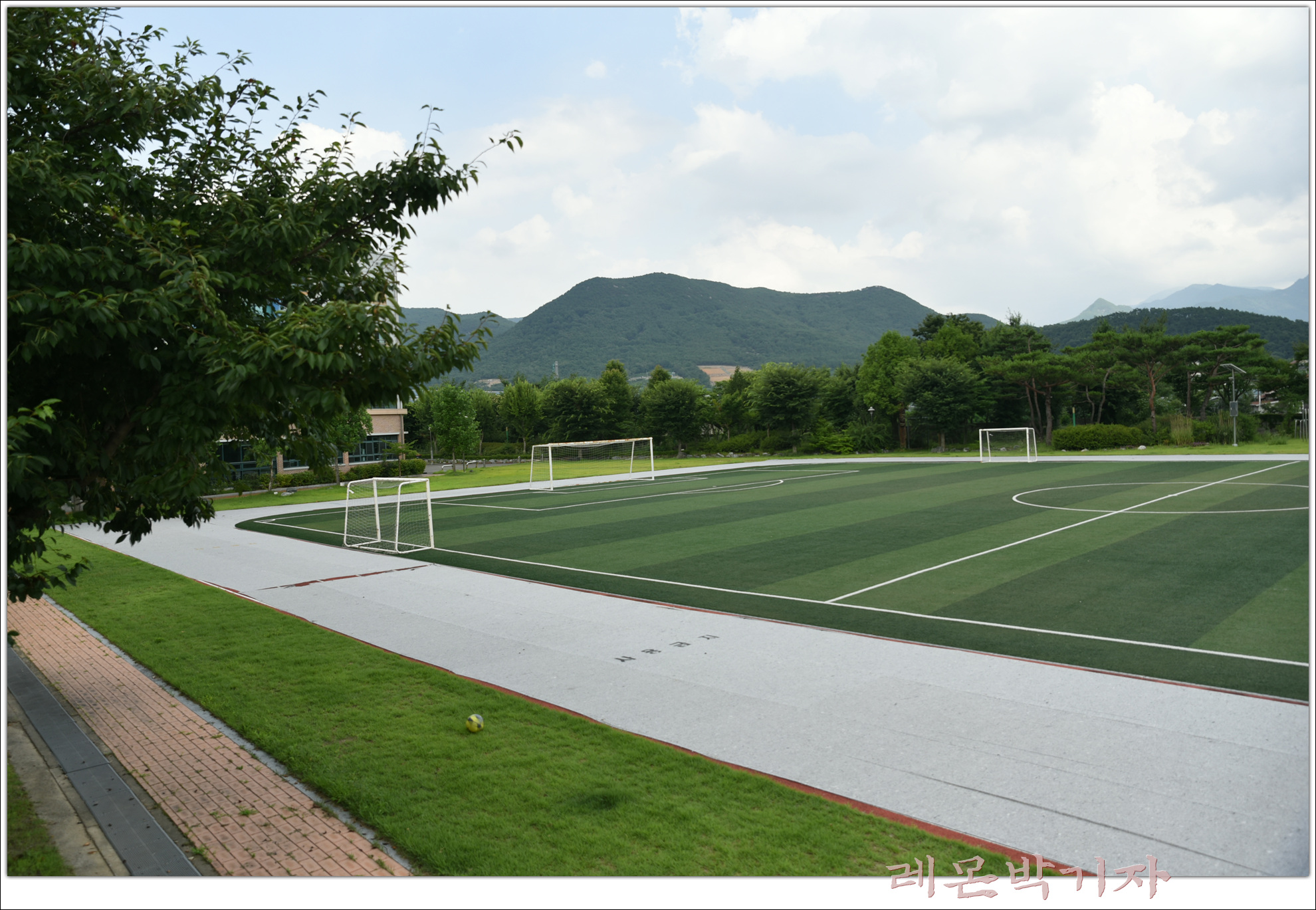 그 아래 넓은 인조잔디 축구장이 있다.