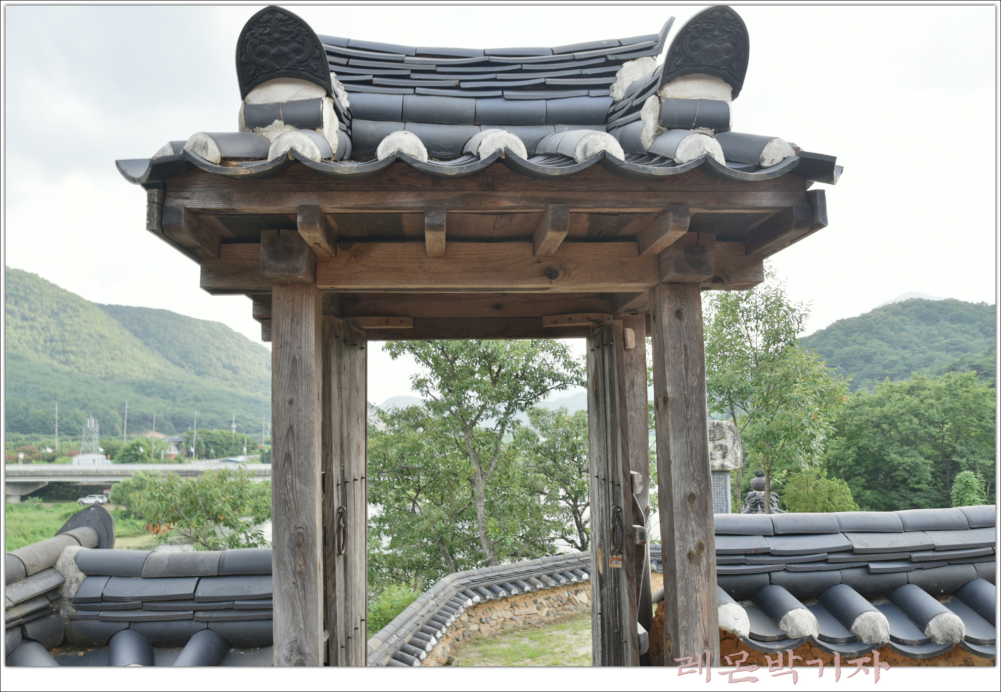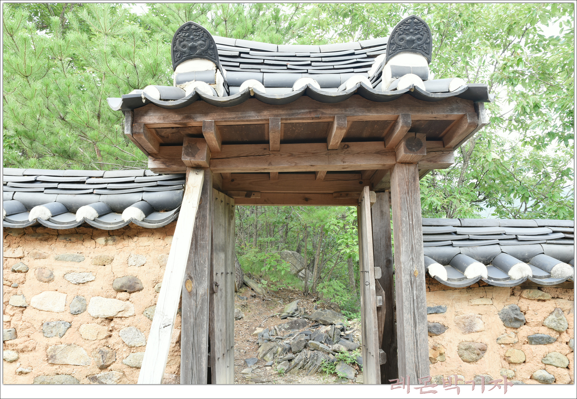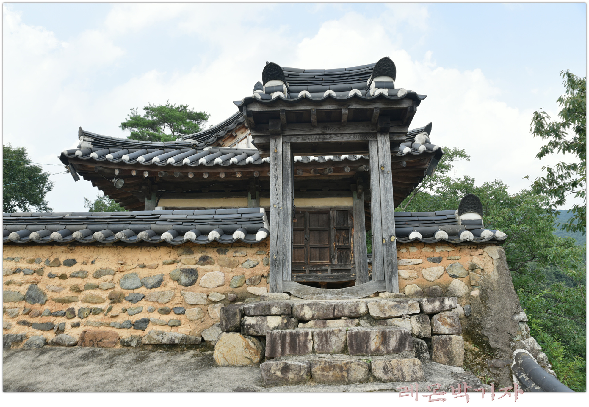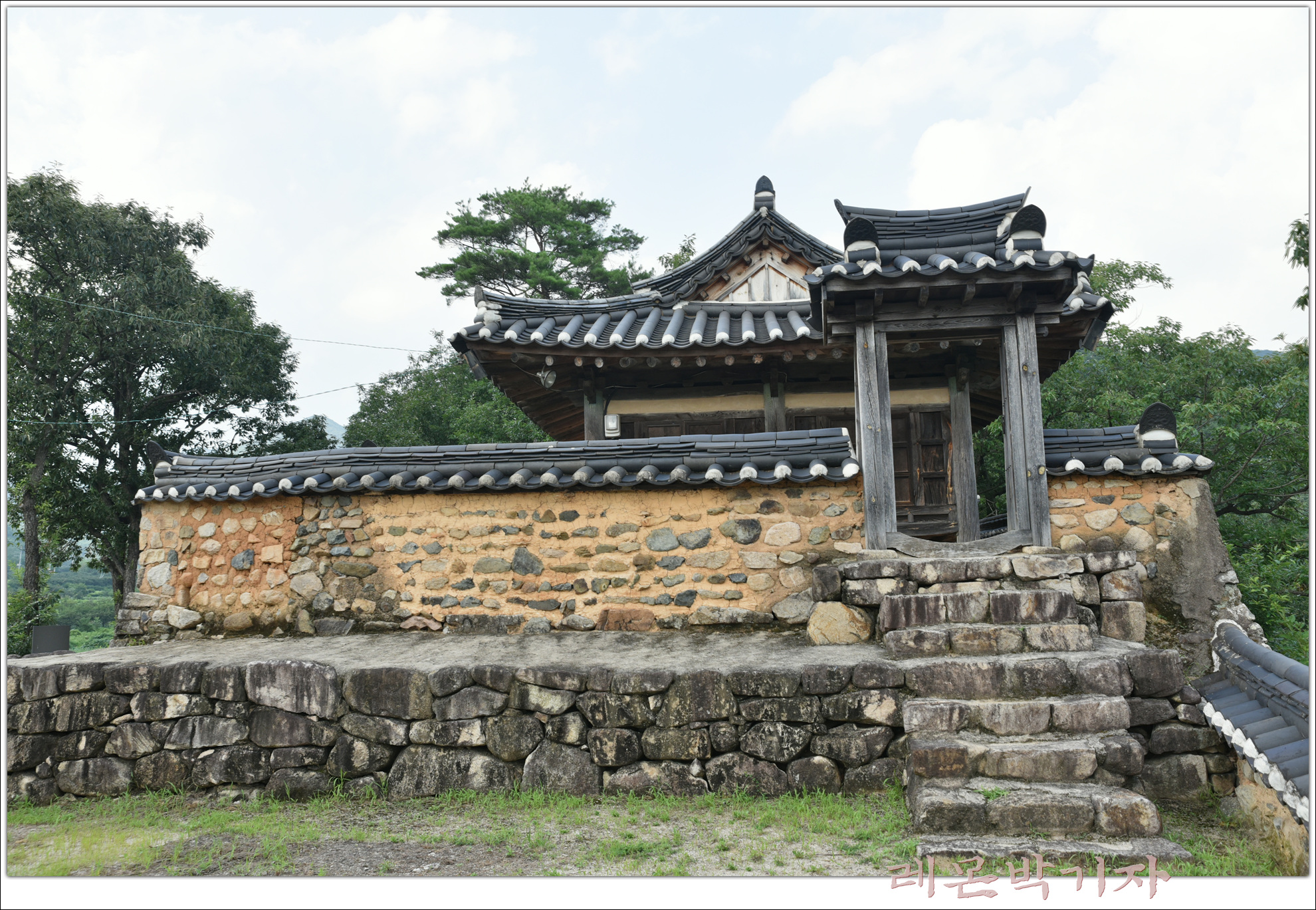 사방에 토담을 쌓고 문을 두어 그 안에 정자를 배치했다.