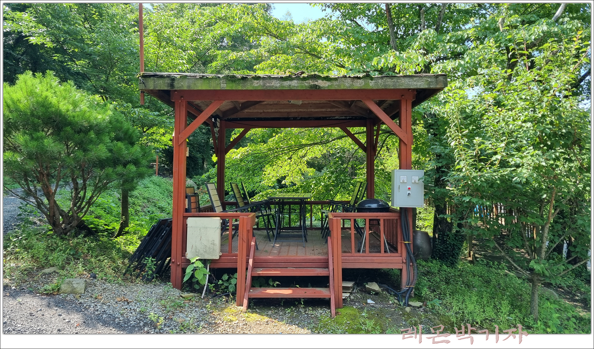 그리고 테라스라고 해야 하나.. 밖에는 음식과 휴식을 취할 수 있는 도구가 준비되어 있습니다.