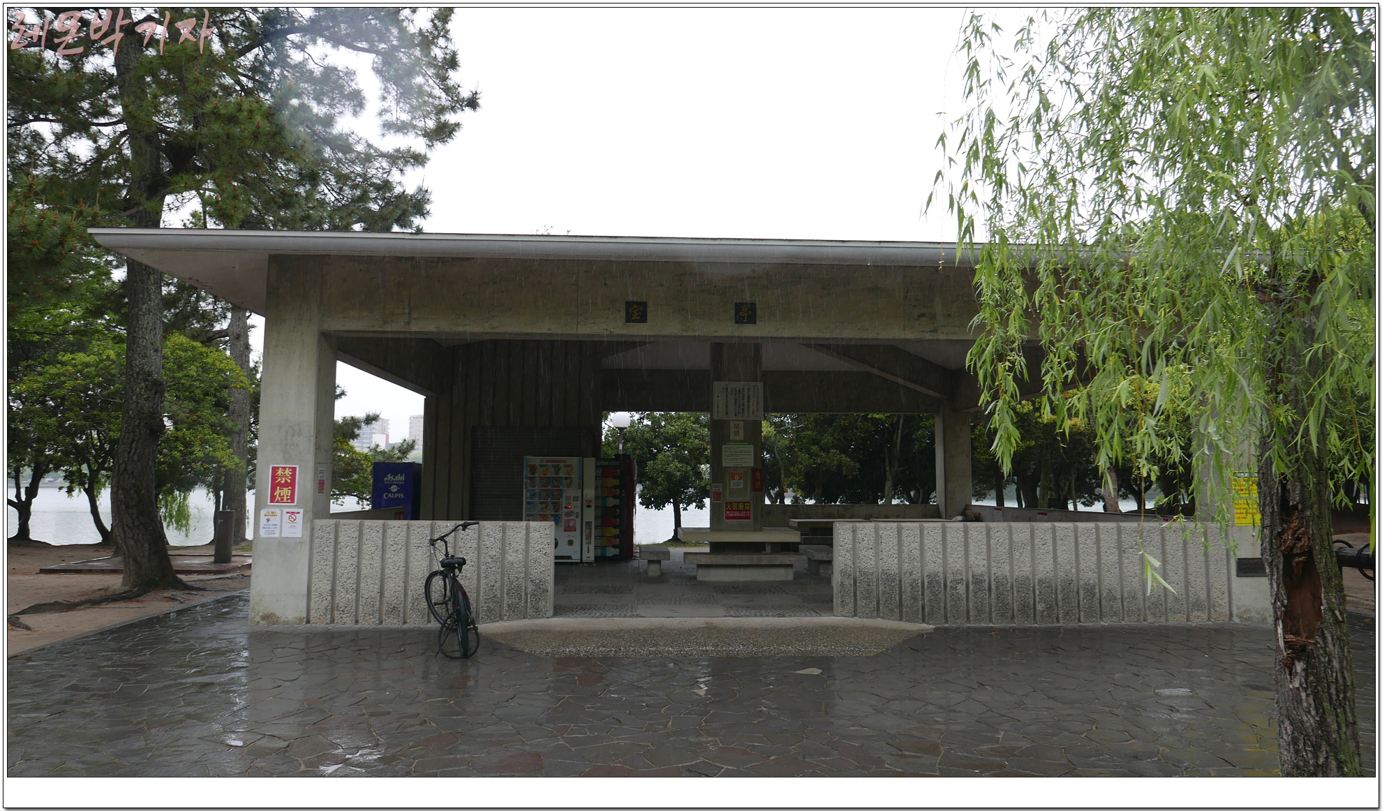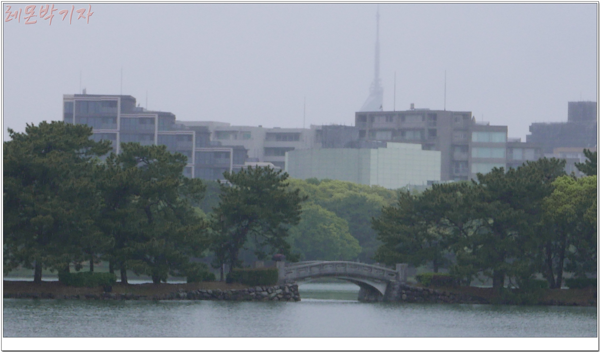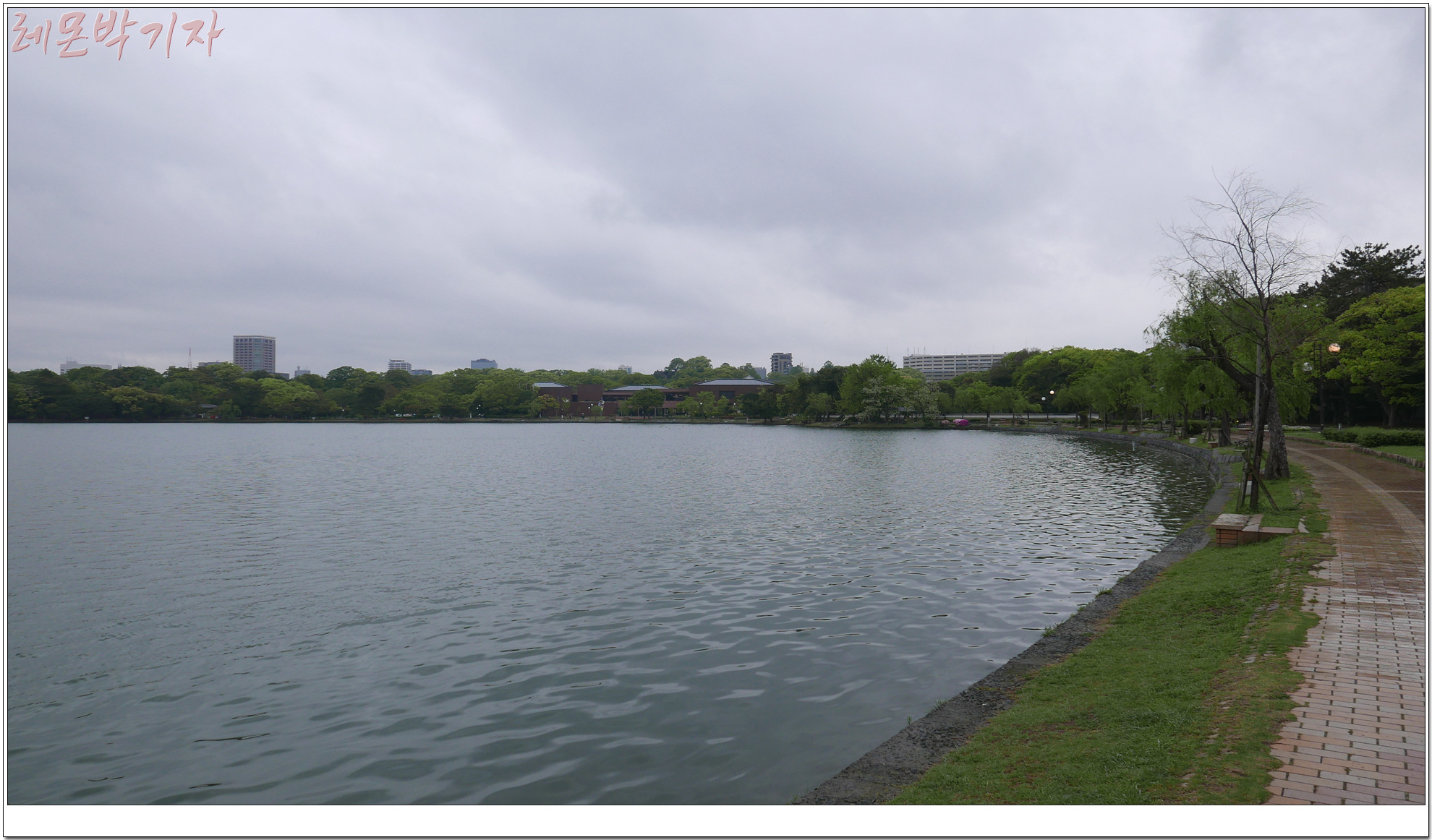 이젠 비오는 날 호수의 풍경을 보기 위해 오호리 공원으로
