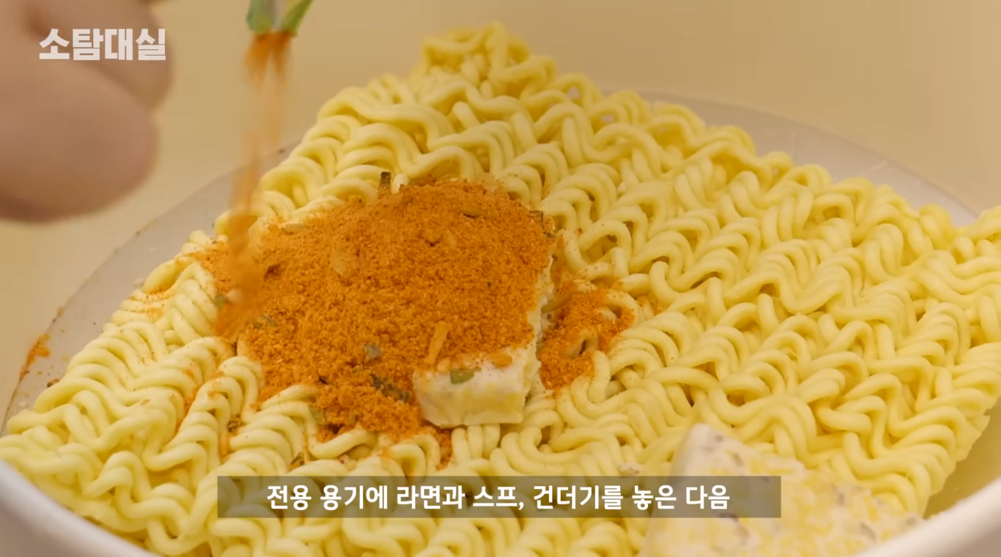 일단 물량을 100밀리 정도 줄여서 라면의 스프맛이 더 강하게 한다.