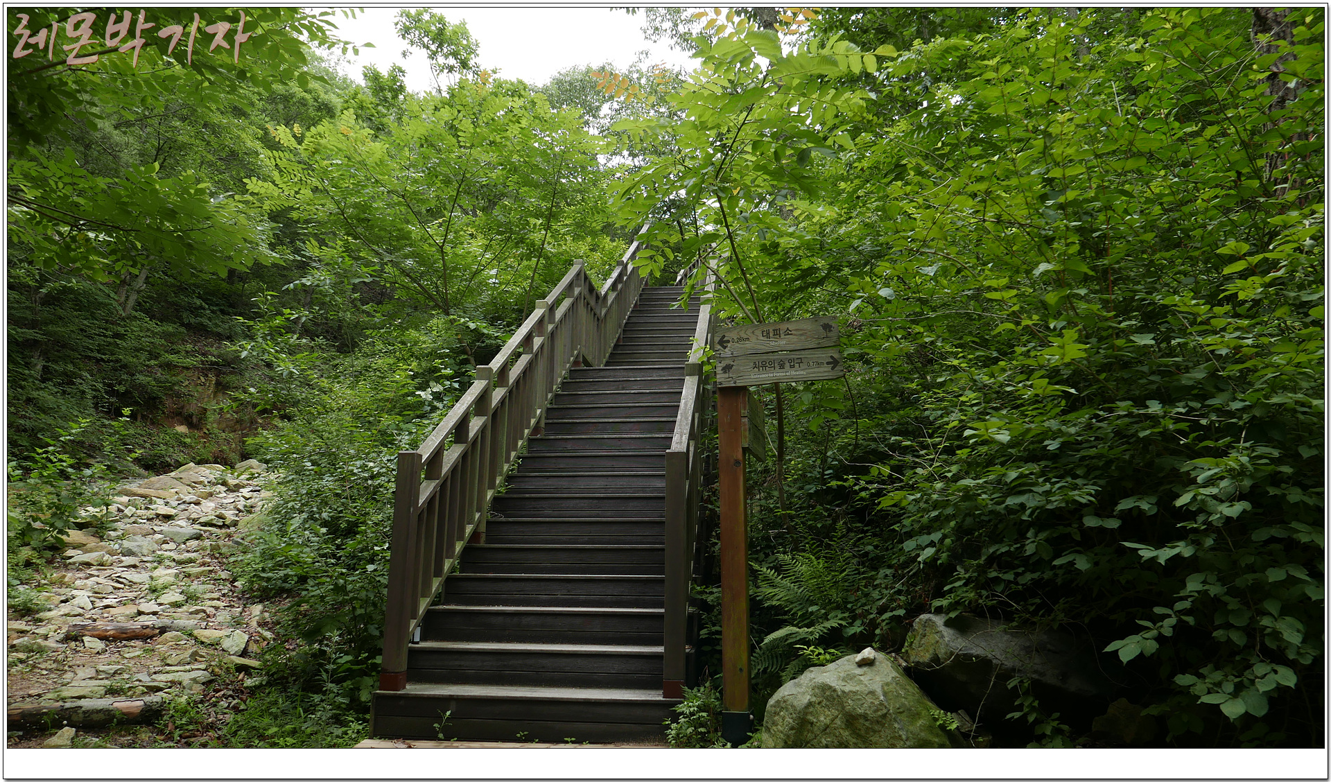 이제 저 계단을 따라 오르면 큰바위쉼터가 있다.