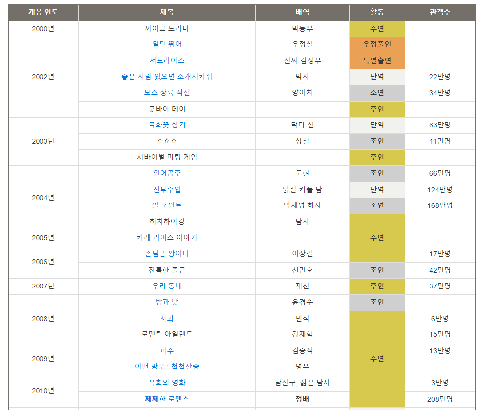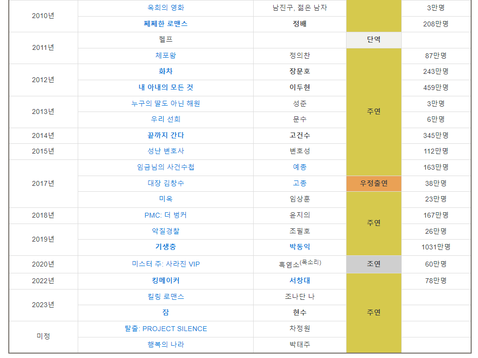 8. 배우 이선균이 출연한 영화들 (출처 : 나무위키)
