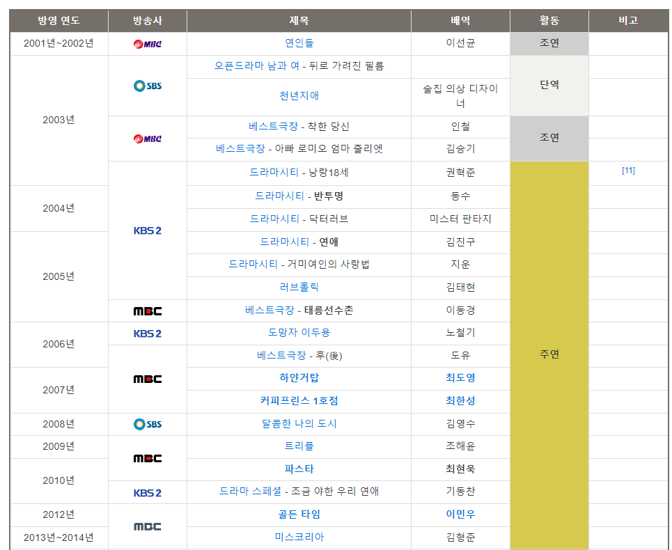 9. 배우 이선균이 출연한 드라마와 뮤지컬 기타 작품들 (출처 : 나무위키)