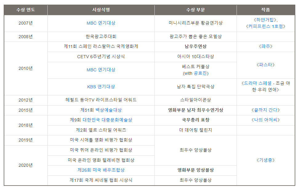 10. 배우 이선균의 수상내역 (출처 : 나무위키)