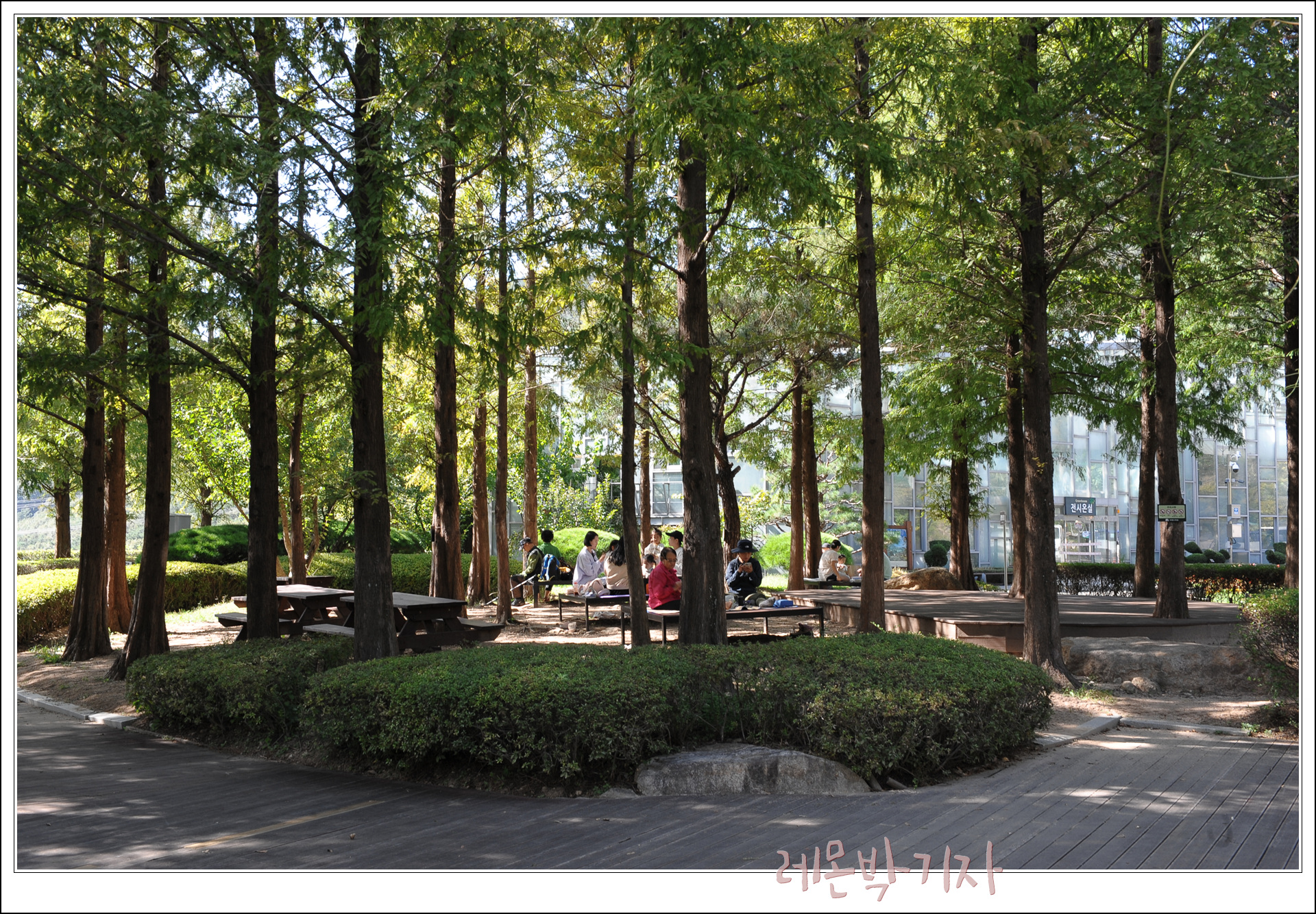 그리고 높이 자란 나무 아래 많은 이들이 도란도란 이야기를 나누고 있다.