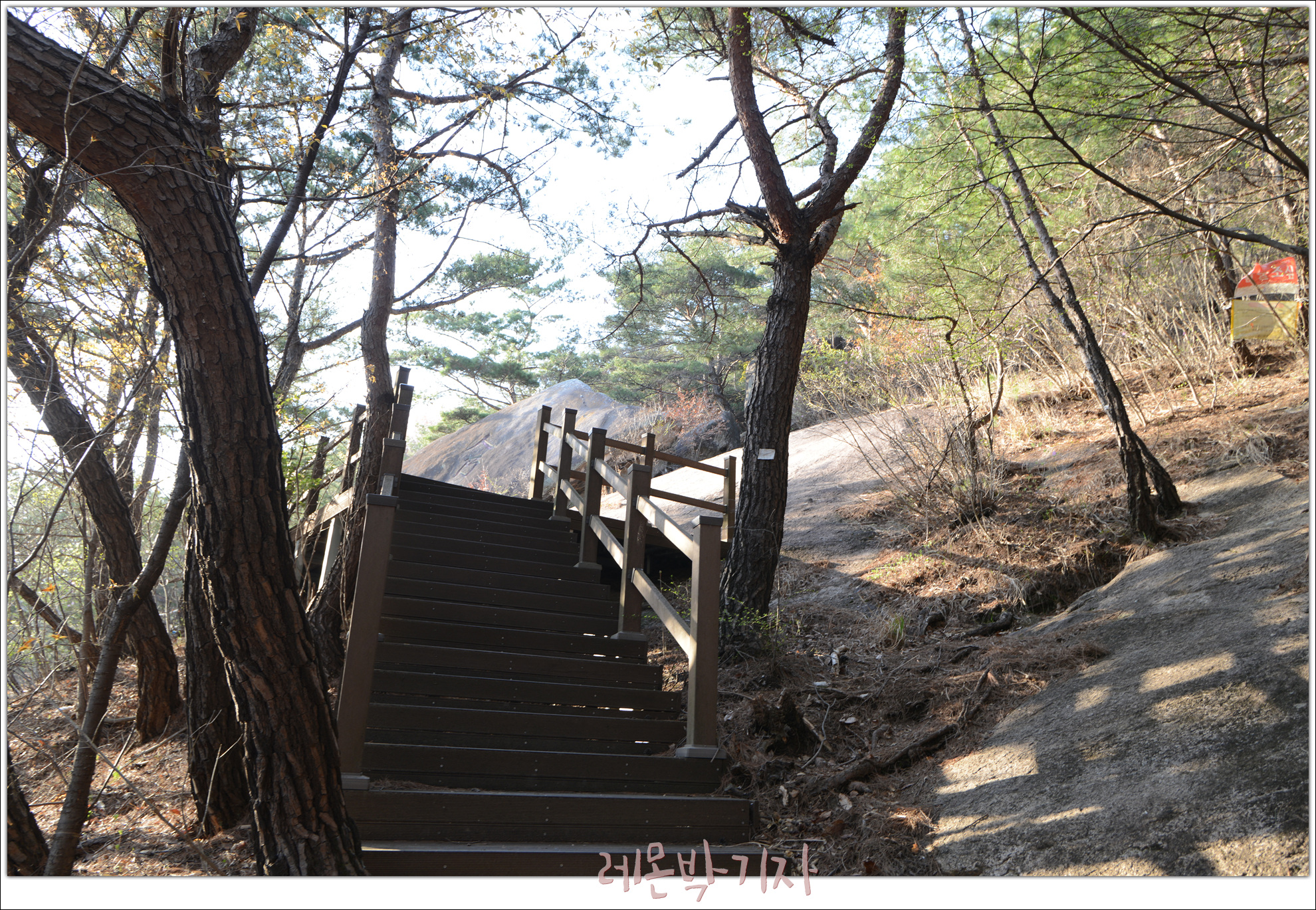 돌계단, 안전난간, 쉼터 등 편의시설을 설치하였습니다.