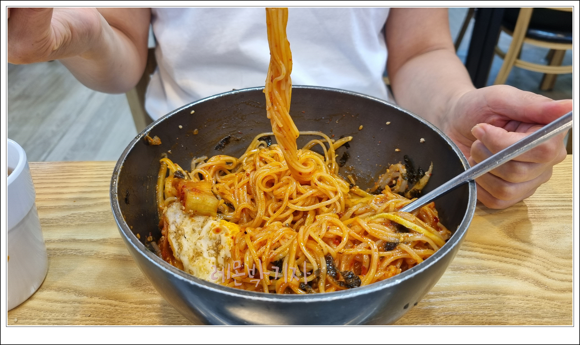 맞은편에 앉은 아내는 저보고 먹어보라 말도 없이 비빔국수를 흡입하고 있습니다.