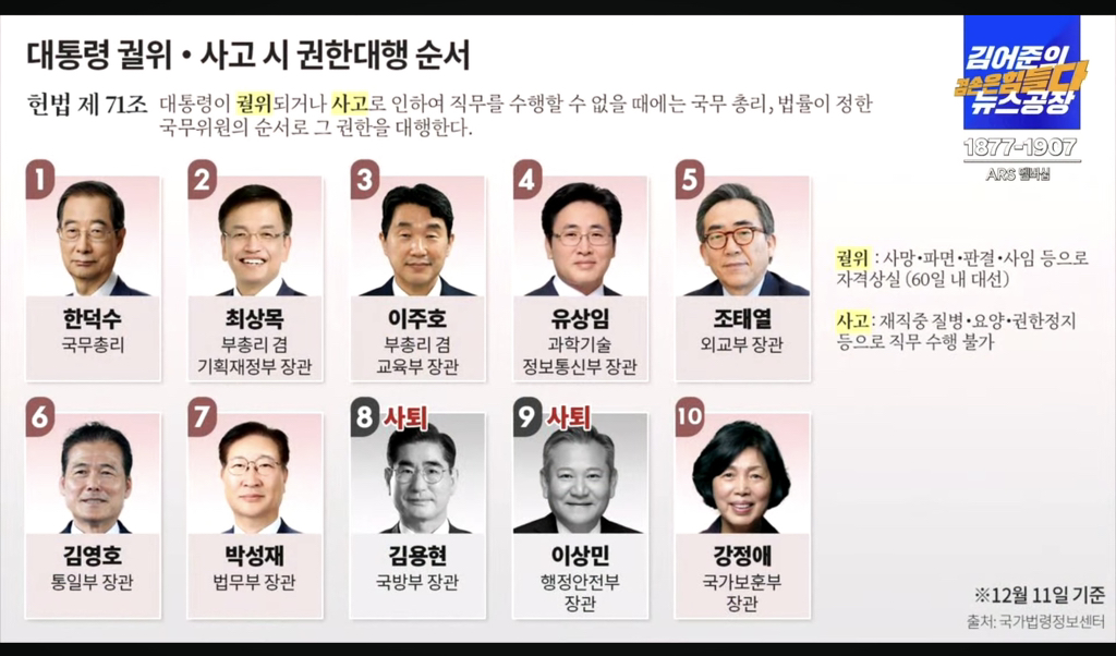 이 체계는 정부 기능의 연속성을 보장하기 위해 마련된 법적 장치입니다. 하지만 현실적으로 장관들에 대한 신뢰와 정당성이 흔들릴 경우 순조롭게 이어지지 않을 수 있습니다.
