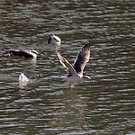 온천천을 누비는 조류 중에 빼놓을 수 없는 것이 갈매기들이다. 흔히 갈매기들은 바다에만 산다고 생각하기 쉬운데, 강이나 작은 하천들에도 날아와서 떼로 모여 자신들의 영역을 확보한다. 이곳에 자주 등장하는 갈매기는 '괭이갈매기'라고 불리는 놈들인데, 보면 알겠지만 눈매가 아주 험악하다. 볼 때마다 갈매기 조폭 보는 느낌이 든다. 그리고 어떤 놈은 매나 독수리 같이 생겨서 한 번씩 착각을 일으키기도 한다. 몸길이는 46.5㎝ 정도이다. 양 날개를 폈을 때의 너비는 120㎝, 날개의 길이는 34~39㎝, 부리 44~56㎝, 부척(跗蹠) 51~61㎜, 꼬리 129~155㎜이다. 등·어깨깃·날개 윗면은 푸른빛이 도는 짙은 회색이고 바깥쪽의 첫째날개깃 선단은 검은색이나, 흰색의 작은 점무늬가 있는 개체도 있다. 안..